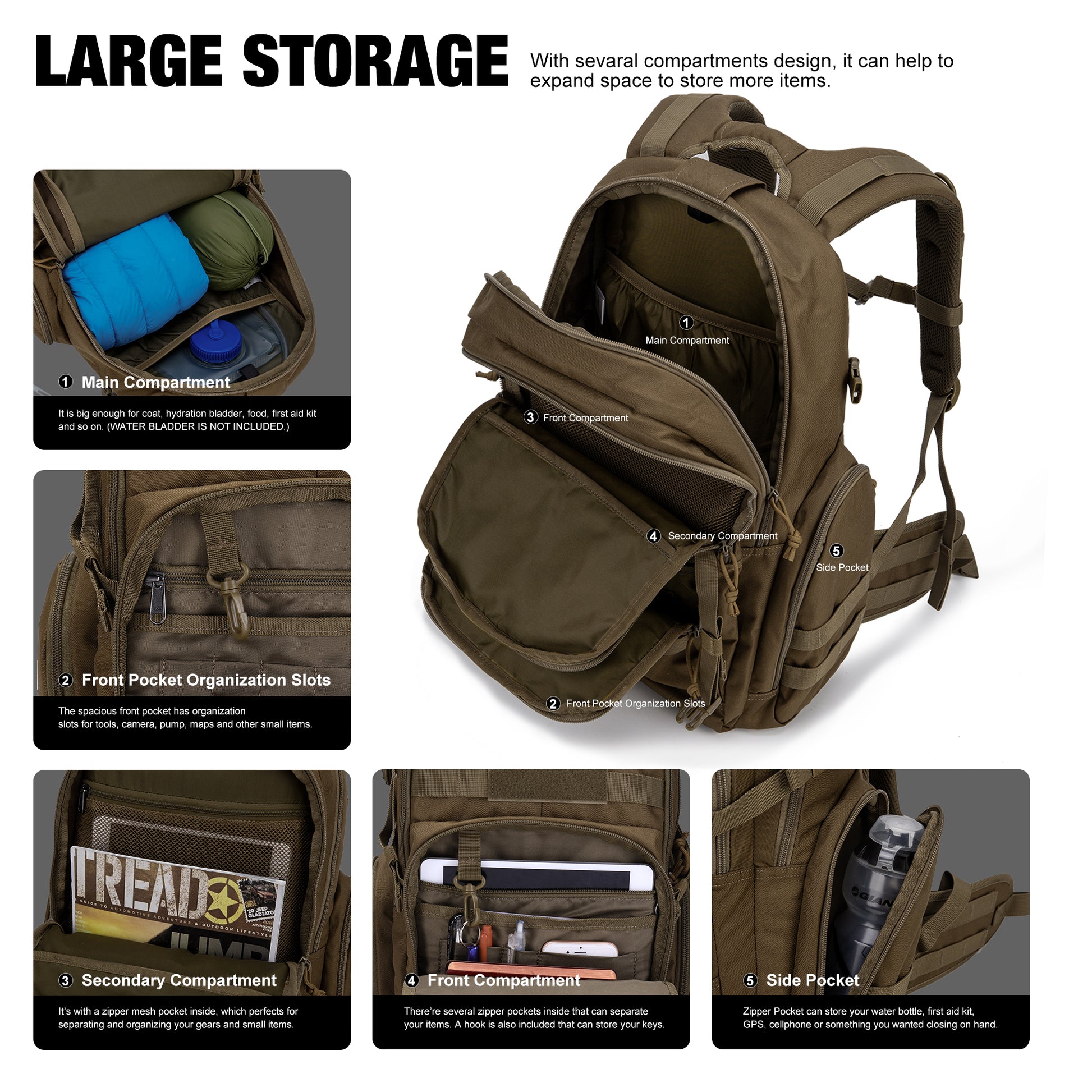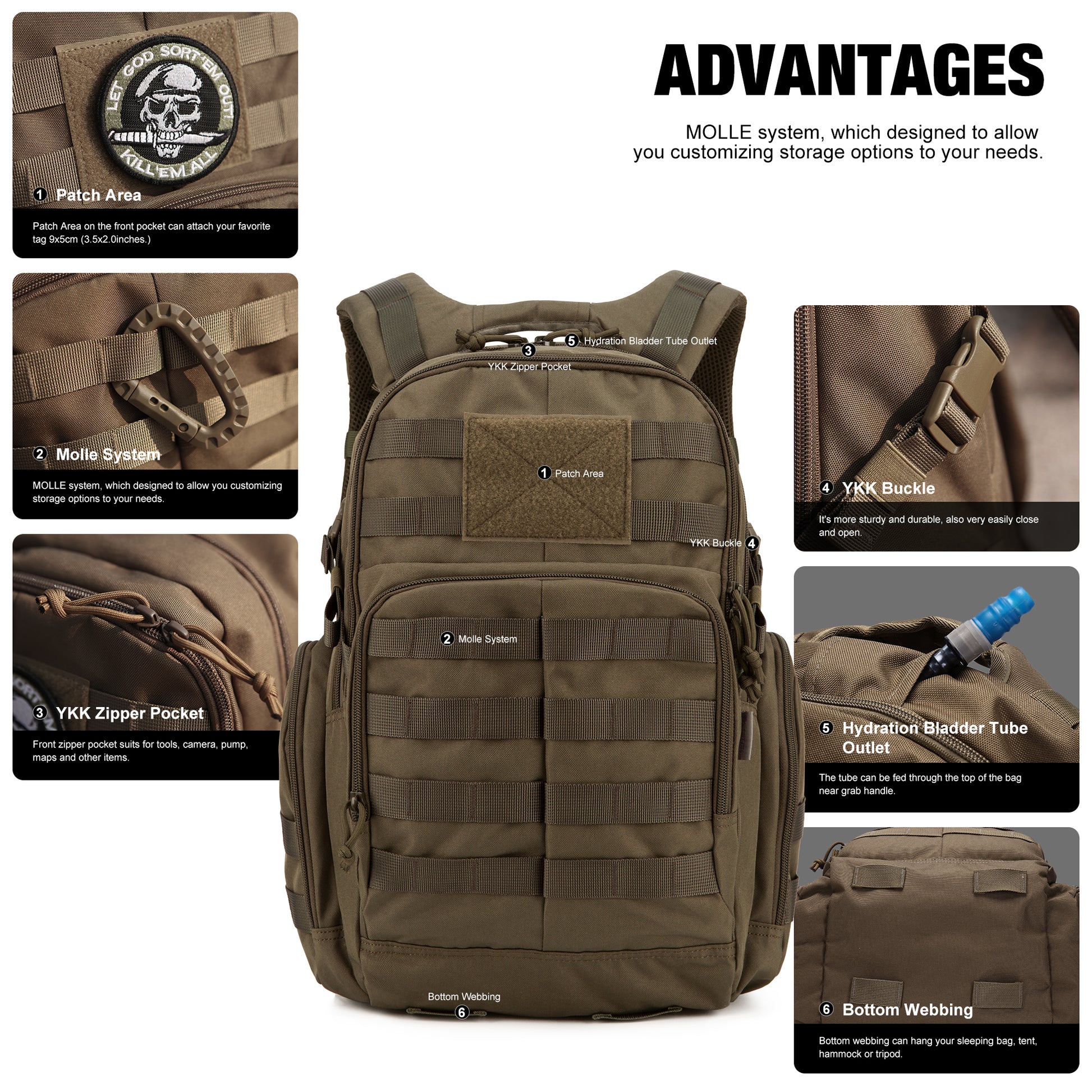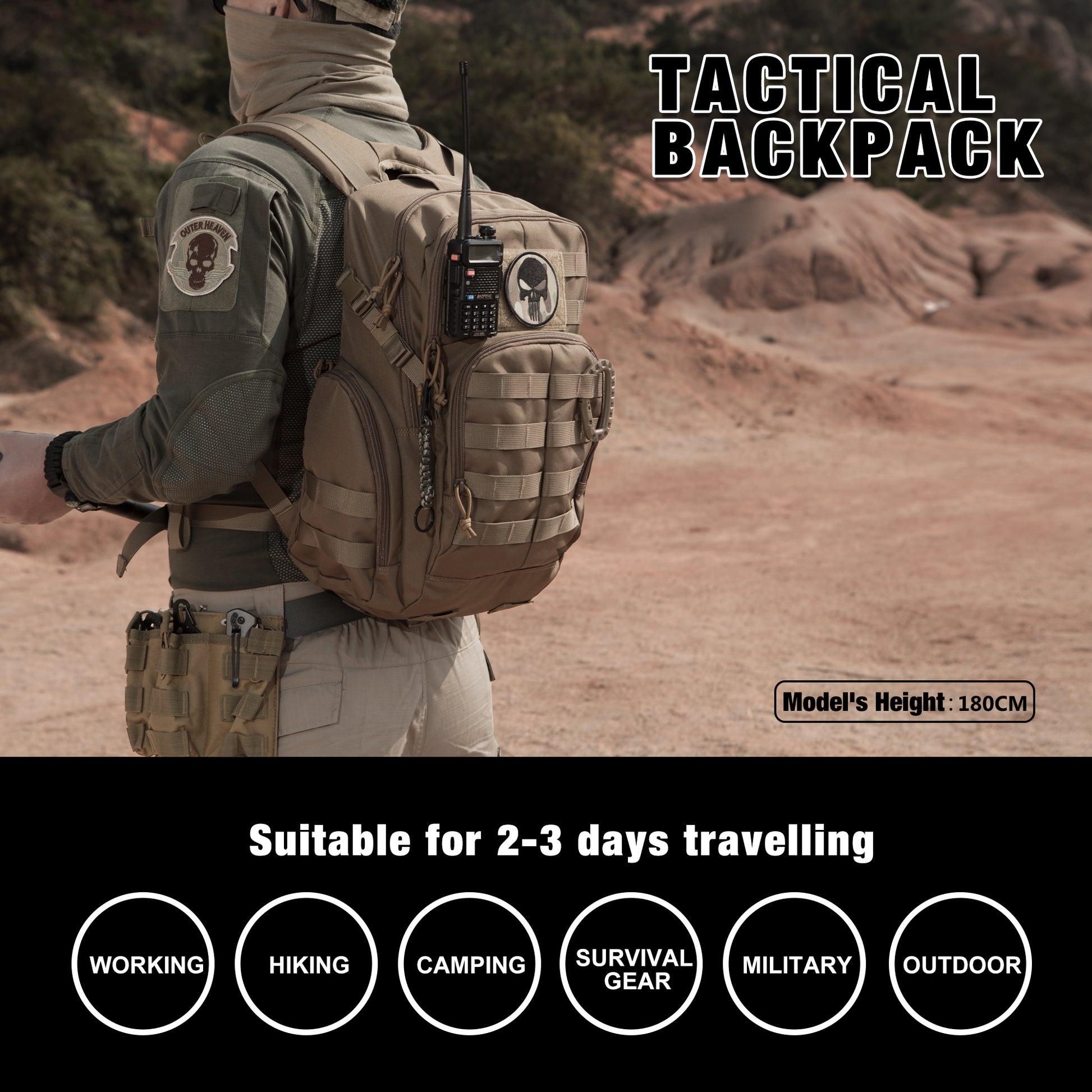 Multifunctional: This tactical backpack can be well used as A 3-day assault pack,tactical backpacks, molle backpack,range bag,survival backpack,rucksack, military army backpack or trekking backpack. |