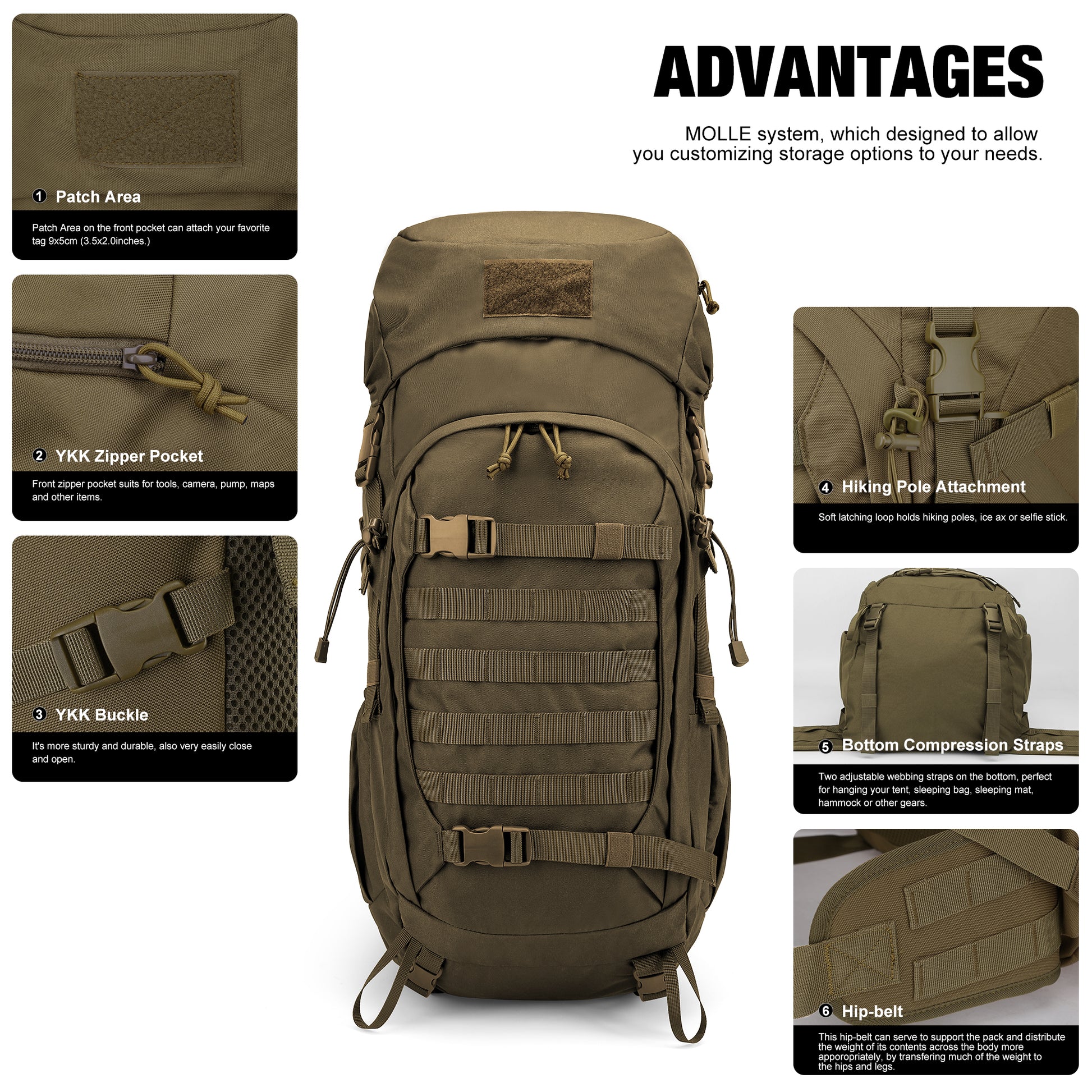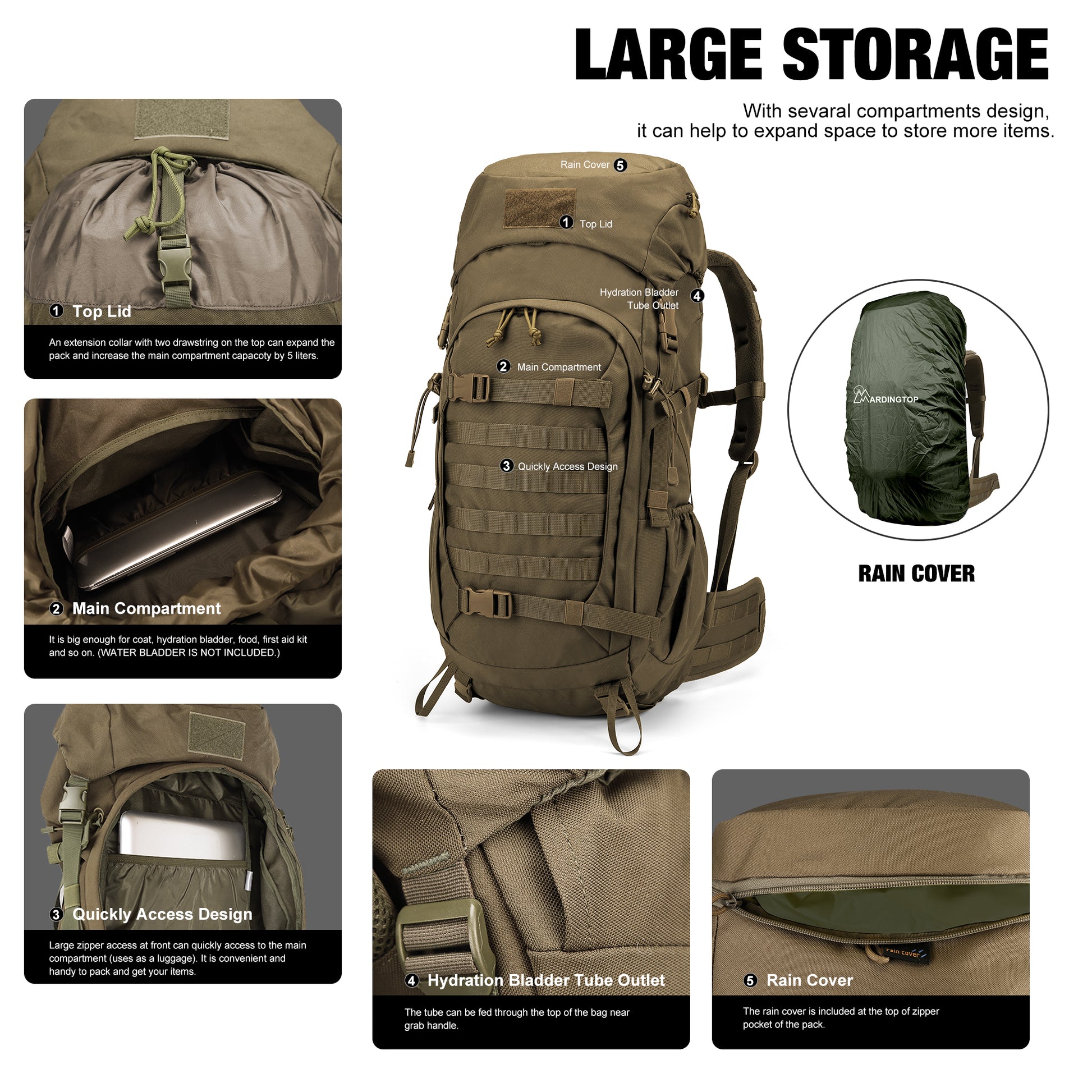 [M5973] Mardingtop 50L Molle Hiking Internal Frame Backpacks with Rain Cover