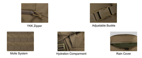 - DURABLE & MULTIFUNCTIONAL - This molle backpack with chest straps to cope with the weight so that it's well used as a 3-day assault pack, bug-out bag, survival backpack, army backpack, trekking backpack, or day pack. This backpack is a nice choice for Gifts!