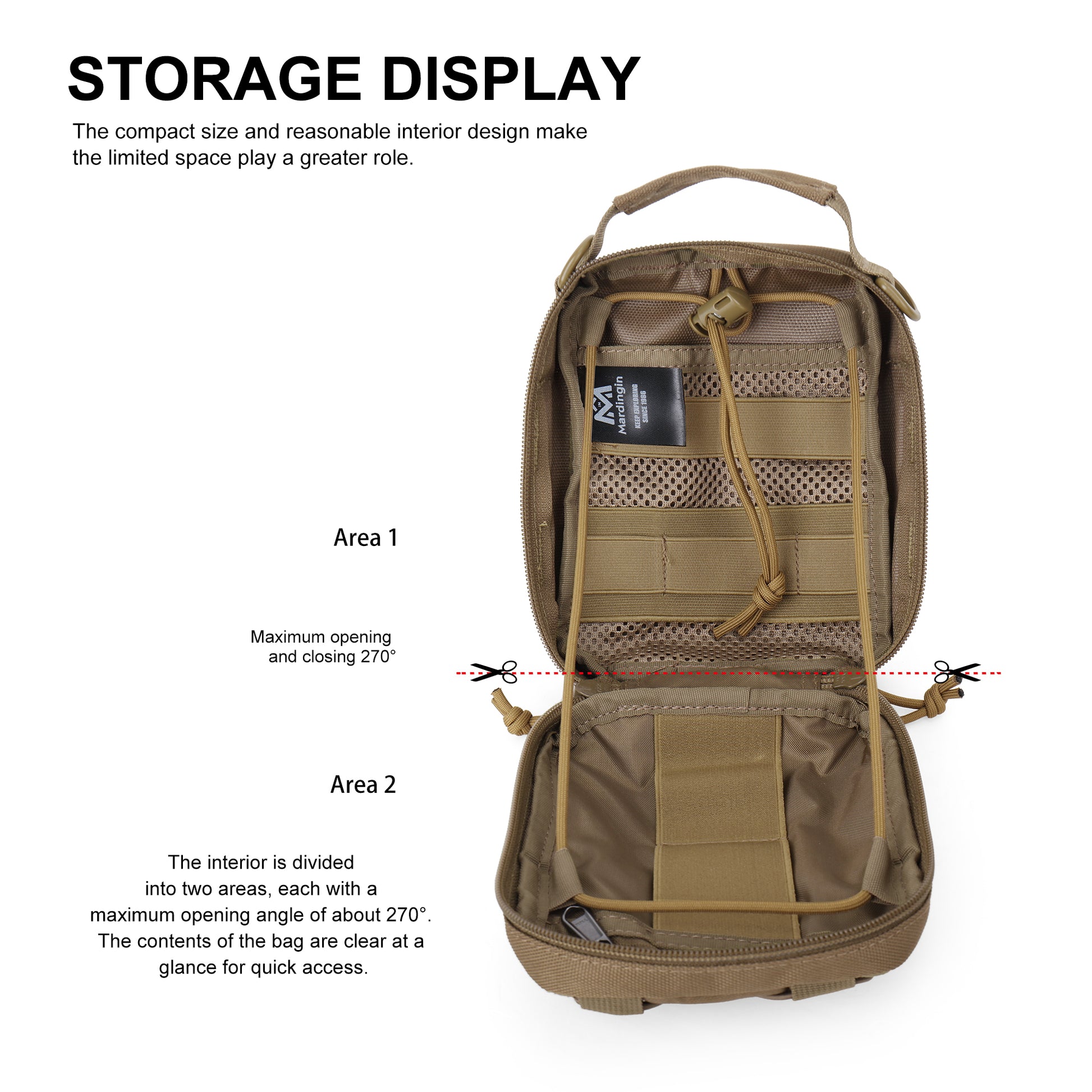 - A Heartfelt Guard: The purpose of this Molle accessory pouch is to provide users with a safe, fast, and convenient storage option. So it has an open pocket on the back, and you can store the webbing or put your wallet, passport, or other personal items in it, the pouch will do its best to protect your important items "QUICK STORE, QUICK ACCESS, ALWAYS READY" That's what the pouch wants to tell you.