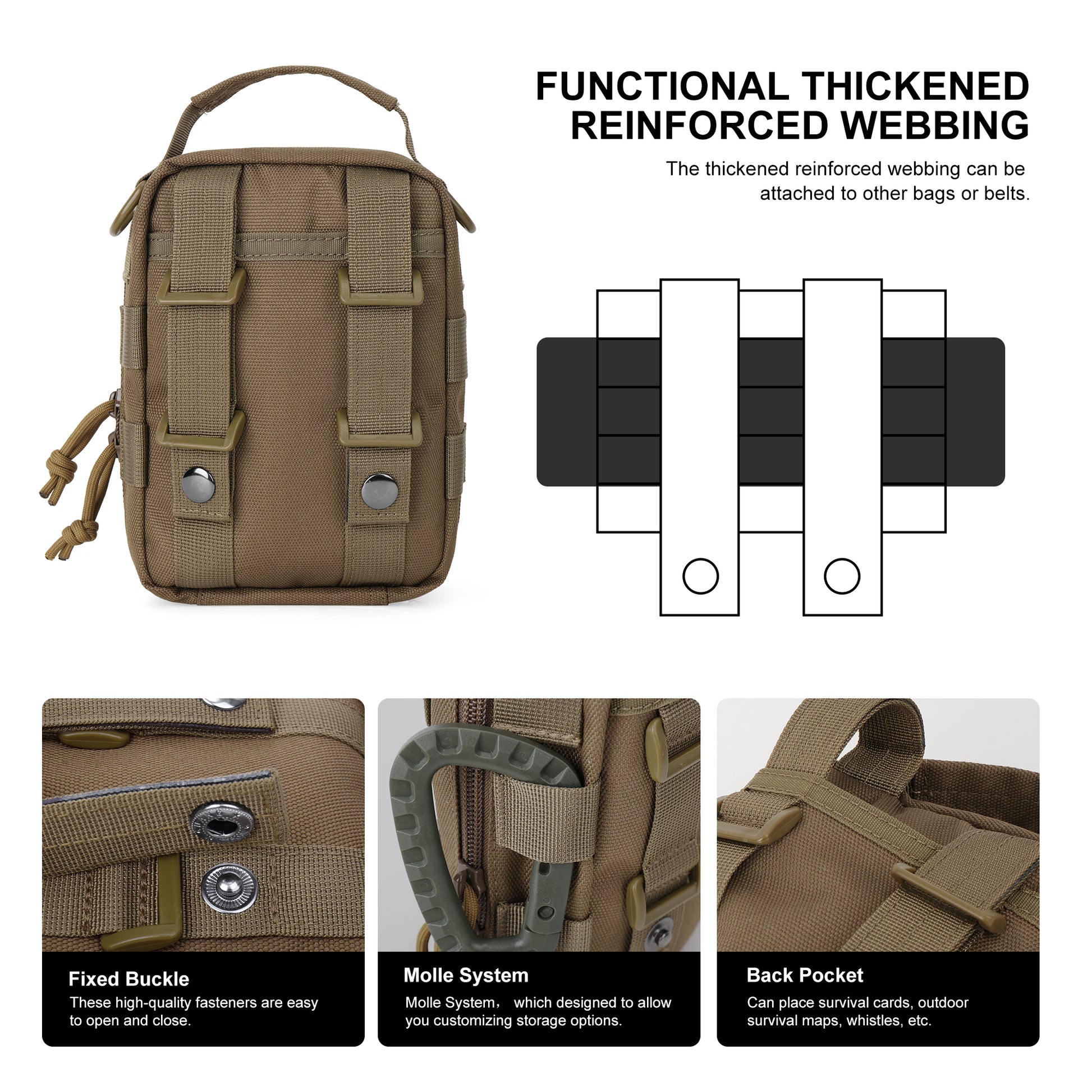 - Multiple Carrying Ways: This pouch has a Molle system and a removable shoulder strap, can be attached to your tactical belt, or tactical vest and also can be fixed to other items by installing fasteners, no extra fasteners, to the molle system on the side. When you just want to take a walk, you can use it as an accessory EDC chest bag by attaching the shoulder strap, or carry it casually with the carry handle